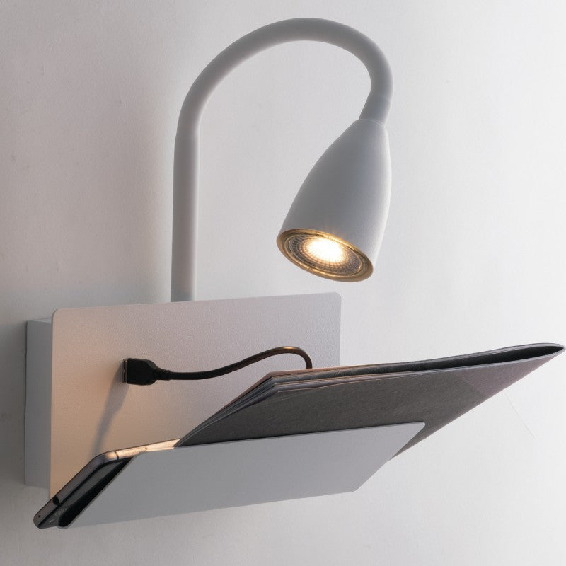 APPLIQUE GULP FLESSIBILE BIANCA CON USB 2A 1XGU10 23X27X49CM