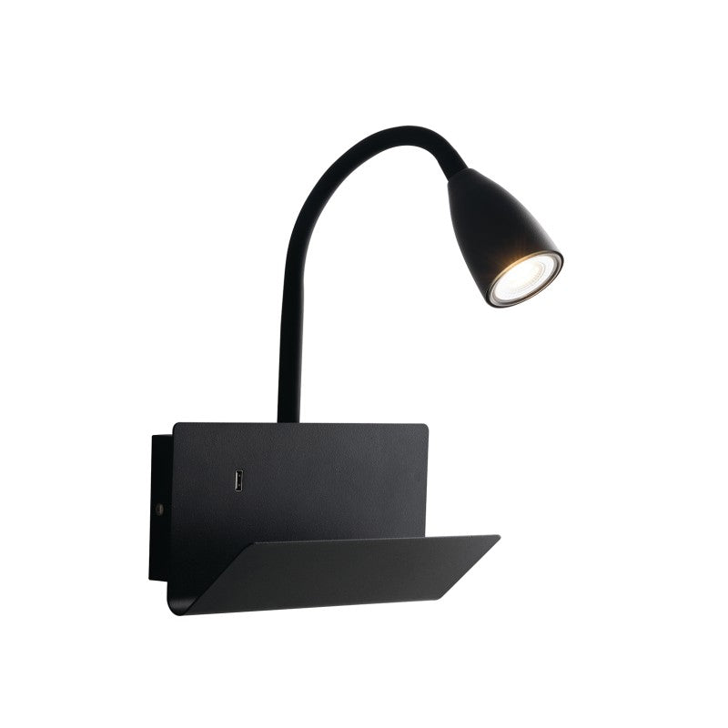 APPLIQUE GULP FLESSIBILE NERA CON USB 2A 1XGU10 23X27X49CM