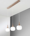 Linear suspension JAIPUR in metal with three glass diffusers White/Wood 3Xe14 97X150X87Cm